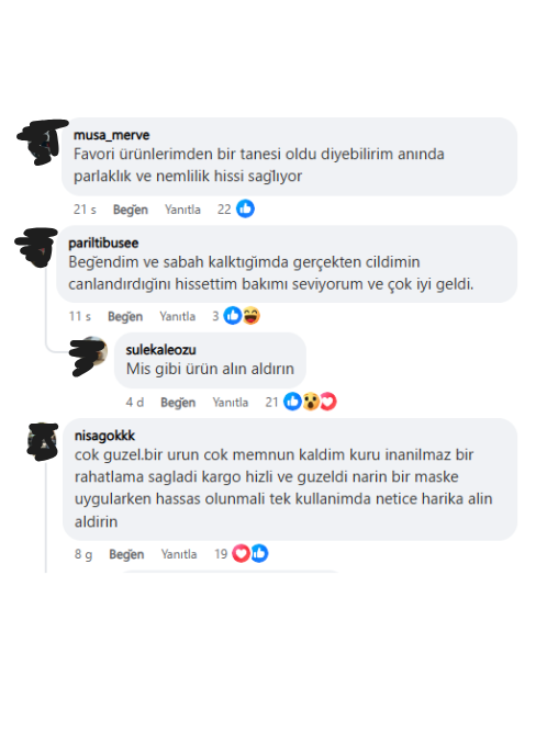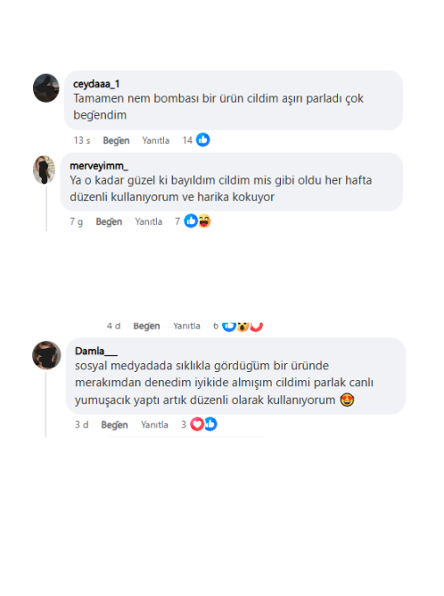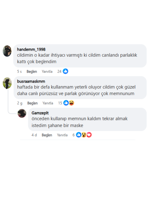 Maske 4 saatte cilt tarafından emilir ve 24–48 saate kadar parlak cilt sağlar.